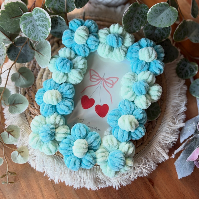 Mit seinen verspielten Blumenverzierungen und der weichen Häkelstruktur bringt er sofort gute Laune in jeden Raum. Perfekt, um Lieblingsfotos, kleine Kunstwerke oder Erinnerungen in Szene zu setzen .