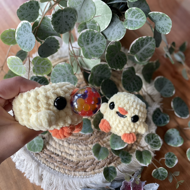 MATERIAL: chenilleyarn, safety eyes, stressball