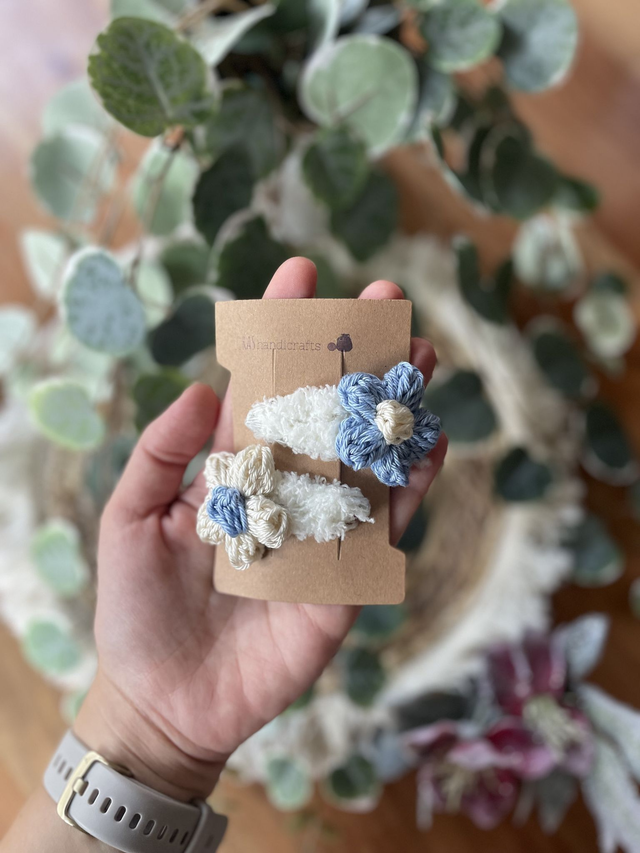 Dieses liebevoll handgemachte Blumen-Haarspangerl ist ein süßes, verspieltes Accessoire und setzt einen zarten Akzent im Haar. Perfekt für den Alltag, besondere Anlässe oder einfach als kleine Freude zwischendurch.