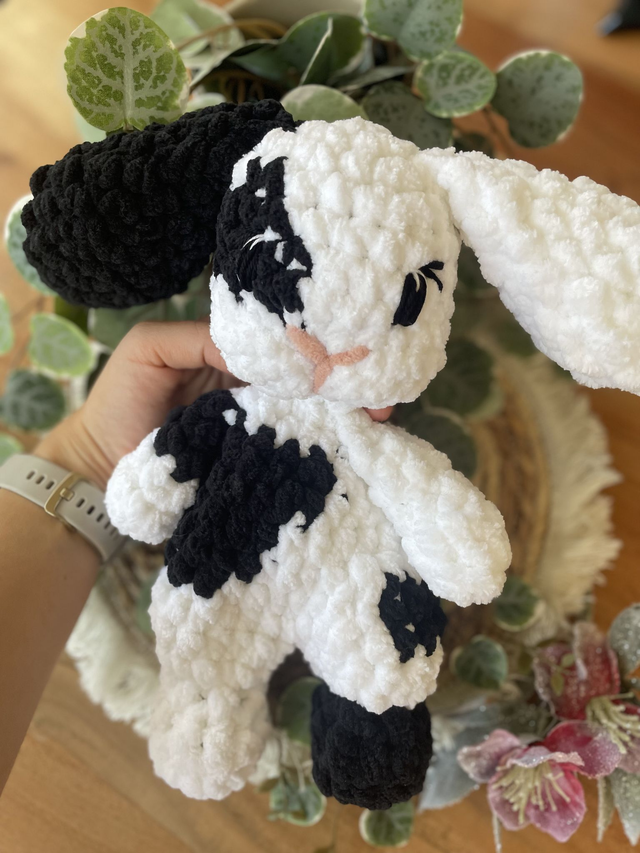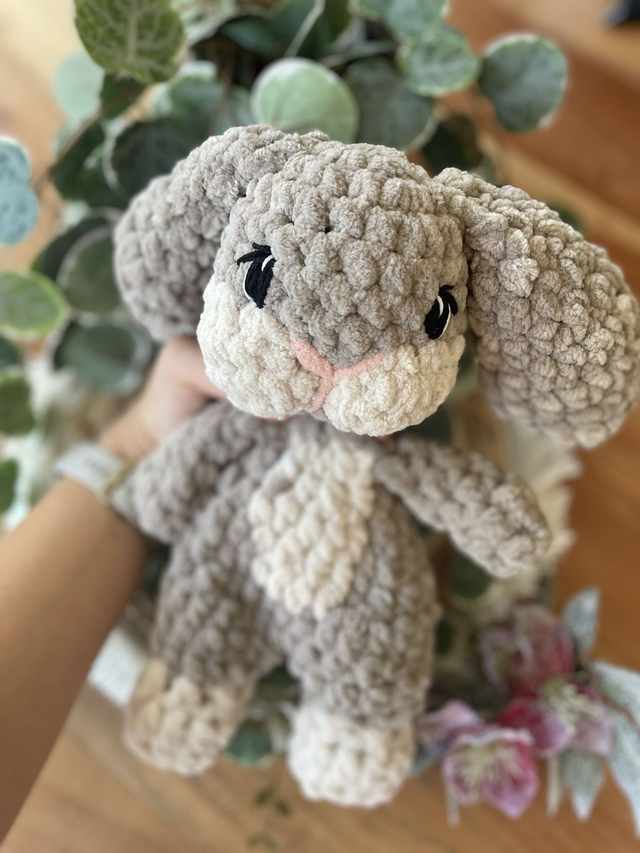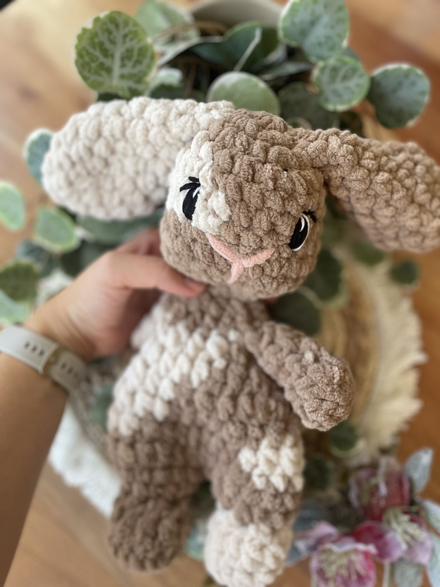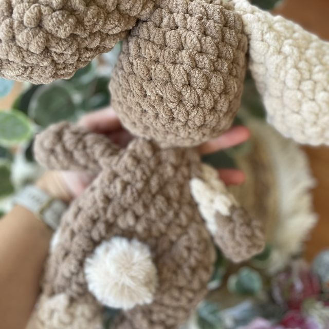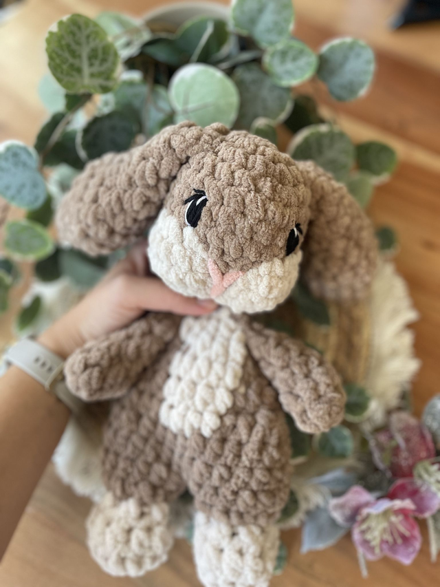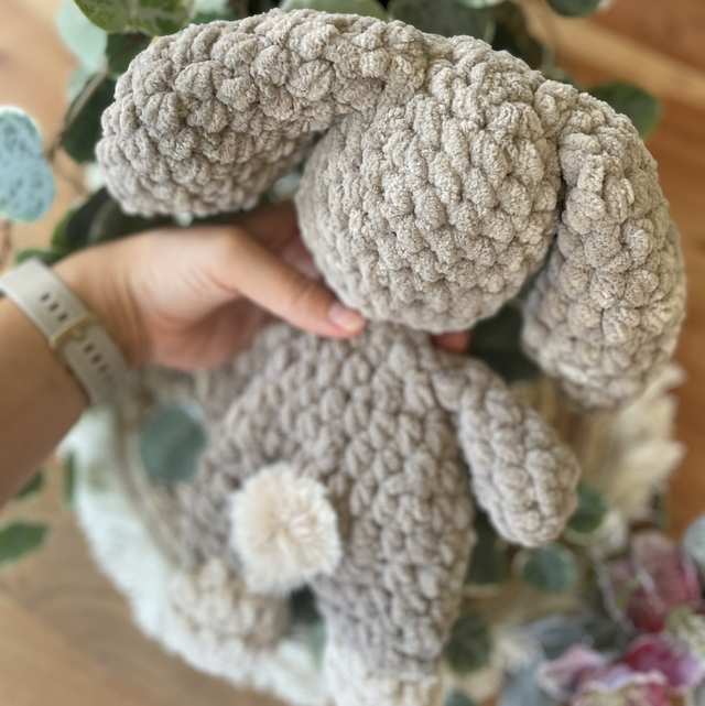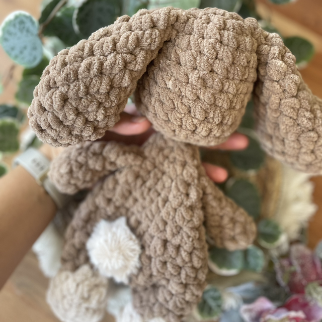 Dieser liebevoll handgehäkelte Hase ist ein weiches Schnuffeltier zum Kuscheln, Trösten und Liebhaben. Mit seinen langen Ohren und dem sanften Ausdruck ist er ein treuer Begleiter für kleine und große Herzen.