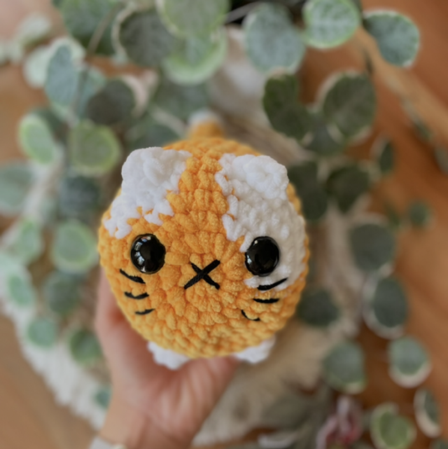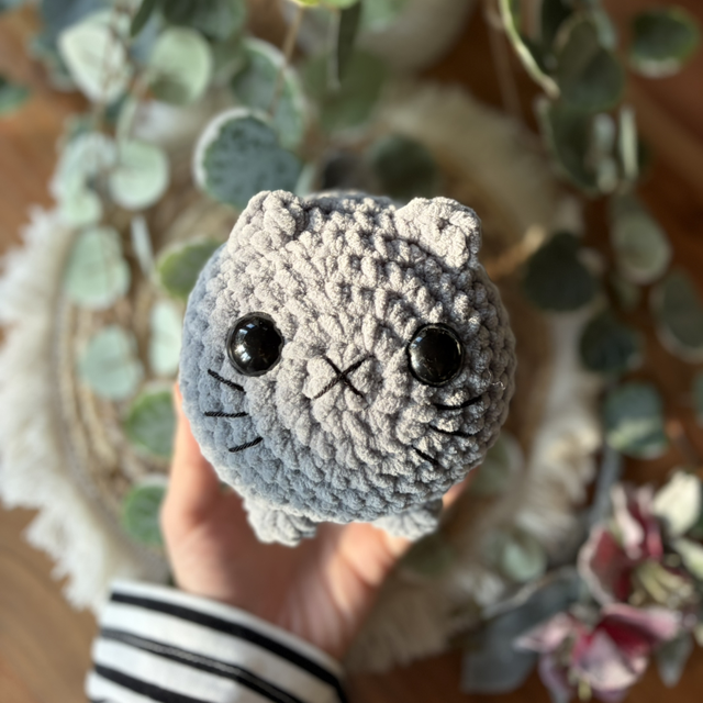 Diese liebevoll handgehäkelte Katze ist ein echtes Unikat und begeistert mit ihrem süßen, verspielten Look. Ob als kleine Deko, Geschenk oder kuscheliger Begleiter – sie bringt sofort Wärme und Freude.