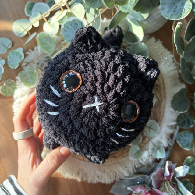 Diese liebevoll handgehäkelte Katze ist ein echtes Unikat und begeistert mit ihrem süßen, verspielten Look. Ob als kleine Deko, Geschenk oder kuscheliger Begleiter – sie bringt sofort Wärme und Freude.